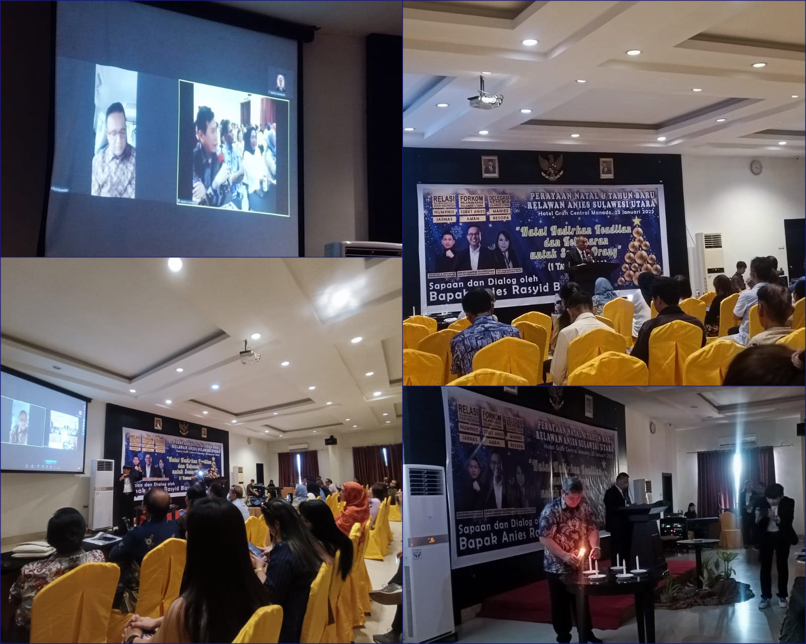 Petasulut.com, SULUT – Relawan Anies Sulawesi Utara (RELASI), Senin (23/1/2023) menggelar ibadah perayaan natal dan tahun baru di Hotel Grand Central Manado.