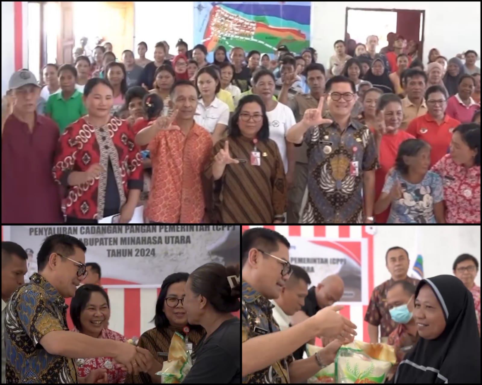 Penyerahan bantuan pangan tersebut, diserahkan langsung oleh Bupati Minahasa Utara Joune Ganda, Kamis (18/07/2024) di Balai Desa Kampung Ambong.
