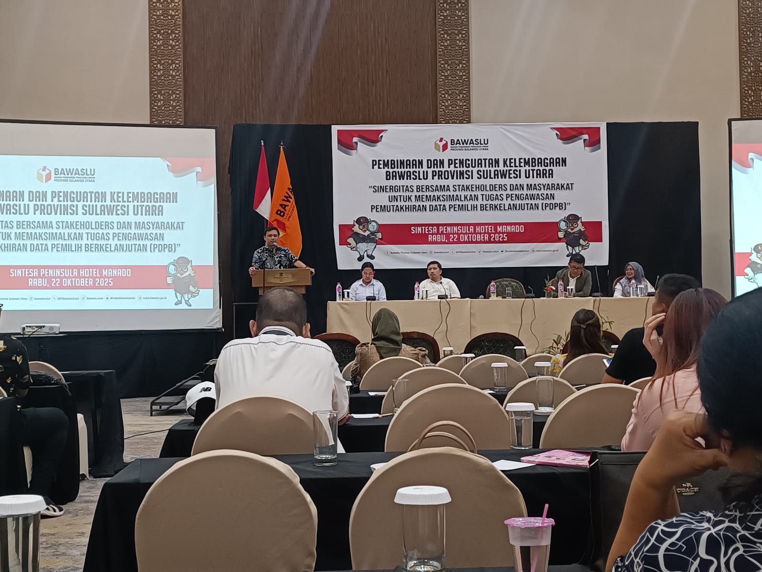Petasulut.com, BAWASLU SULAWESI UTARA – Badan Pengawas Pemilu (Bawaslu) Provinsi Sulawesi Utara terus memperkuat sinergi dengan berbagai pihak dalam upaya meningkatkan kualitas pengawasan pemilu, khususnya dalam proses Pemutakhiran Data Pemilih Berkelanjutan (PDPB). Hal itu diwujudkan melalui kegiatan bertema “Sinergitas Bersama Stakeholders dan Masyarakat untuk Memaksimalkan Tugas Pengawasan Pemutakhiran Data Pemilih Berkelanjutan (PDPB)”, yang digelar di Manado, Rabu (22/10/2025).