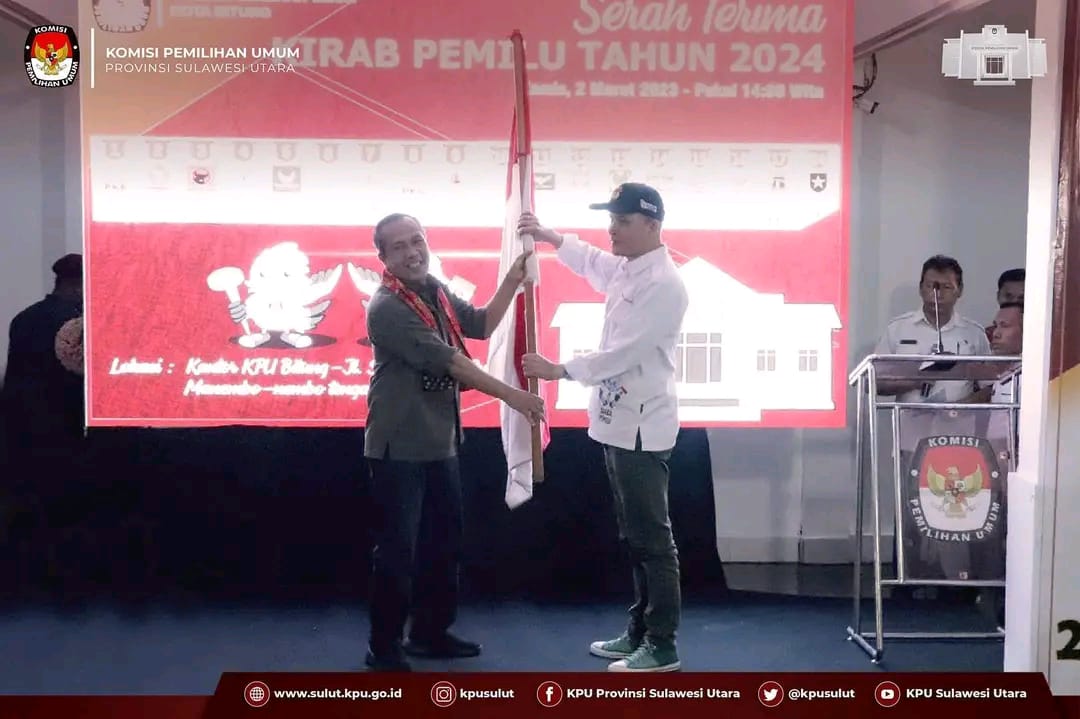 Usai prosesi penjemputan, seremoni penyerahan Bendera Kirab Pemilu dilanjutkan di Kantor KPU Kota Bitung diterima langsung oleh Ketua KPU Provinsi Sulawesi Utara, Meidy Tinangon dan Ketua KPU Kota Bitung, Deslie Sumampouw. Selanjutnya akan diarak keliling Kota Bitung hingga 7 Maret mendatang.