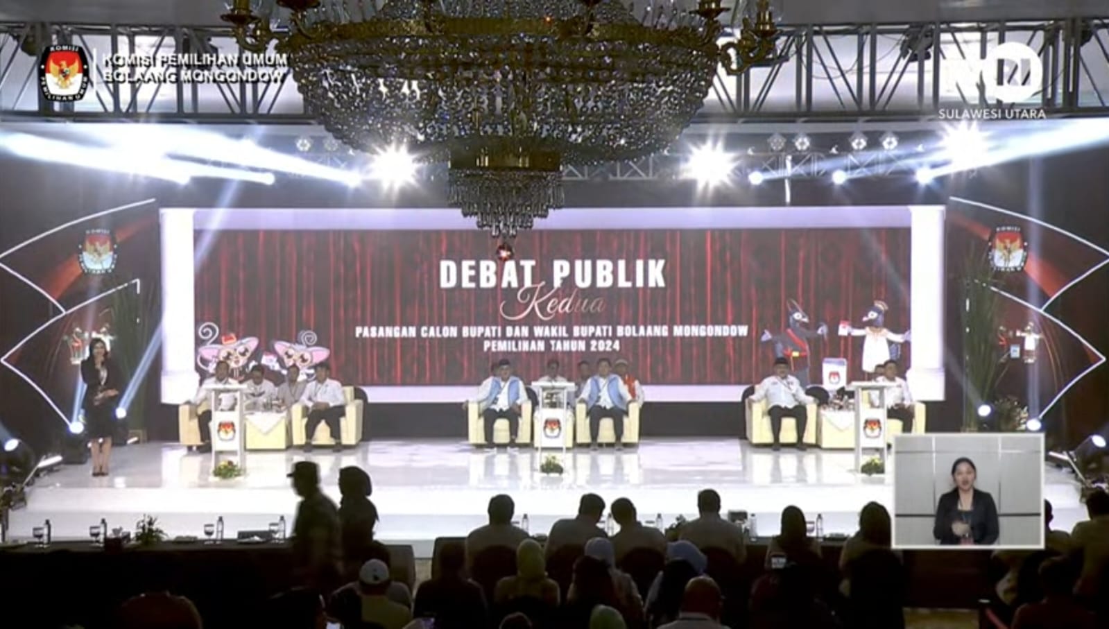 Debat kandidat kedua ini diikuti calon Bupati dan Wakil Bupati nomor urut 1, Sukron Mamonto – Refly Stenly Ombuh, nomor urut 2, Yusra Alhabsyi – Dony Lumenta, dan nomor urut 3, Limi Mokodompit – Welty Komaling.