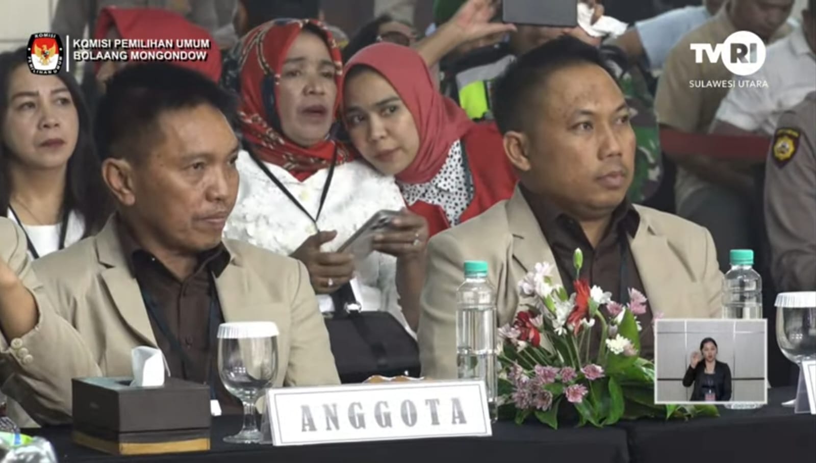 Turut hadir, Jajaran Anggota dan sekretariat KPU Bolmong, Bawaslu, Forkompinda, para pendukung dan insan pers.