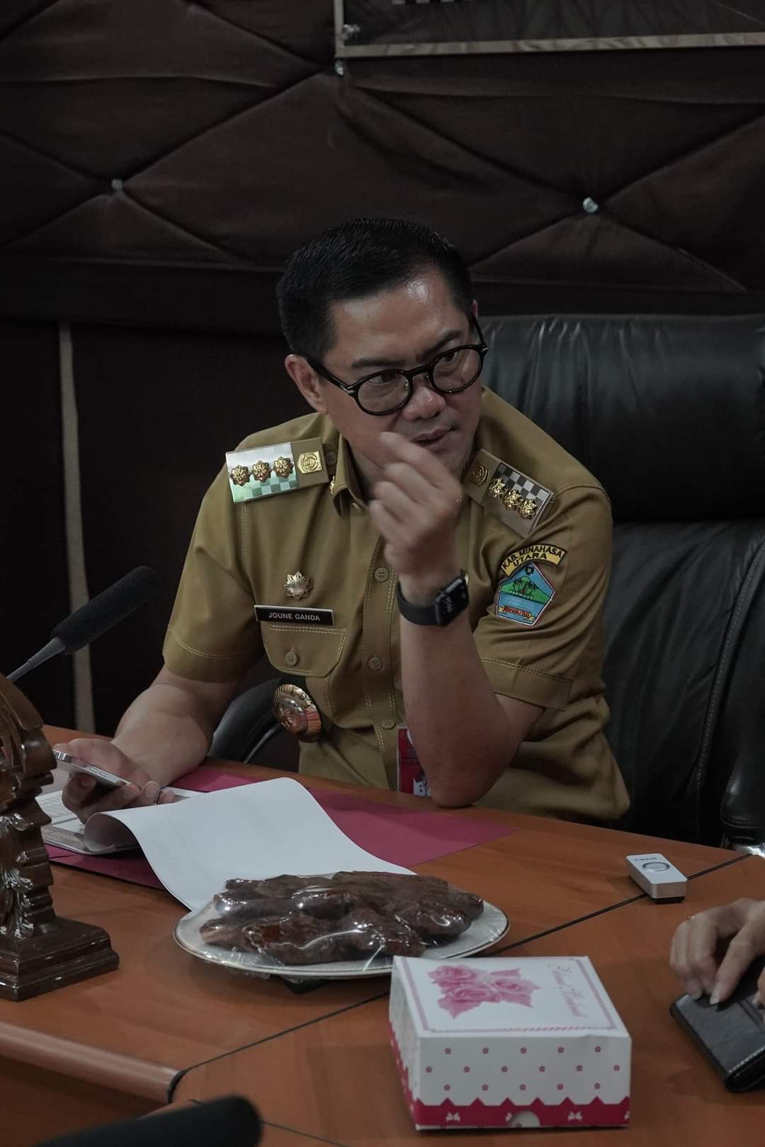 Bupati Joune Ganda juga mengikuti rapat itu di dampingi Sekda dan para Kepala Perangkat Daerah.