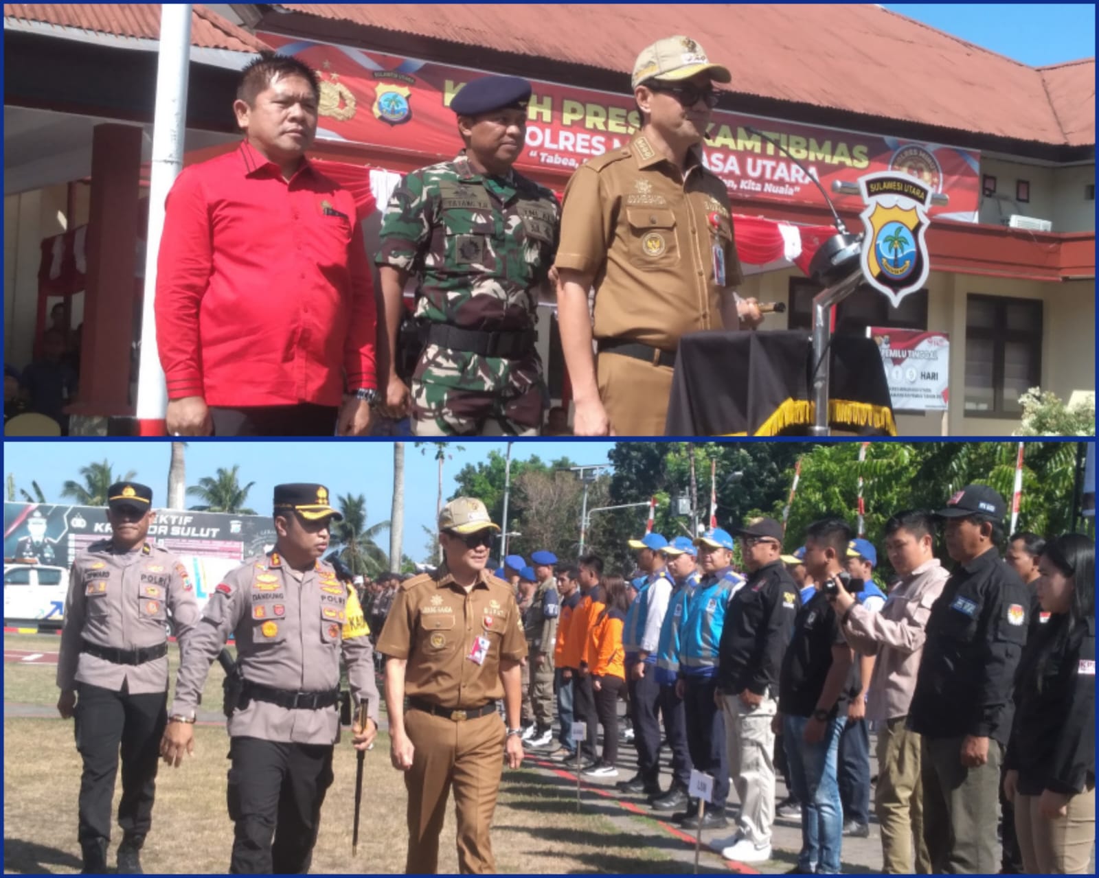 Bupati Minut Joune Ganda turut hadir beserta Danlanudal Letkol Tatang Yanuar, Ketua Dewan Minut Denny Lolong, Komisioner Bawaslu dan KPU Minut, Forkopimda, Pimpinan Partai Politik, Pimpinan OPD dengan peserta upacara dari Unsur TNI Polri, Dishub, Damkar, Pol PP, dan LSM.