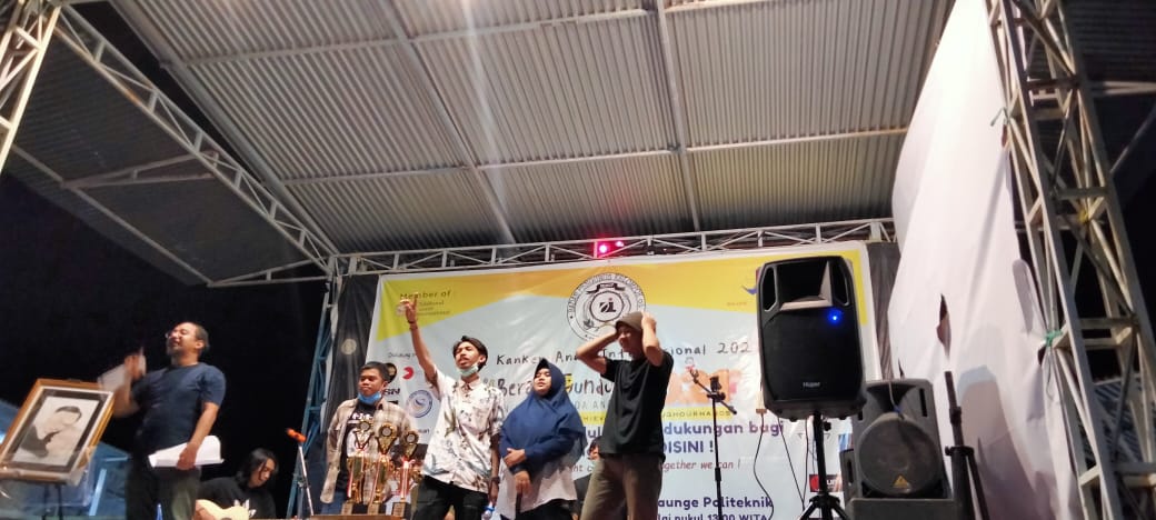 Pada pantauan media, ada lima belas orang terlibat berani gundul dan enam band yang terlibat dalam lomba akustik, di Meeting Point Food and Launge Politeknik, Jumat (19/02/2021).