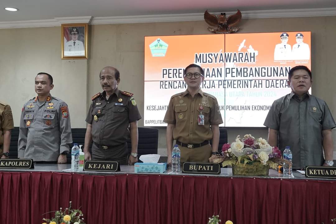 Petasulut.com, MINUT – Bupati Minahasa Utara Joune J.E. Ganda, S.E., MAP., M.M., M.Si., menghadiri sekaligus membuka secara resmi Musyawarah Perencanaan Pembangunan (Musrenbang) penyusunan Rencana Kerja Pemerintah Daerah (RKPD) Tahun 2024 Kabupaten Minut, di Bappelitbang pada Selasa, (28/3/2023).