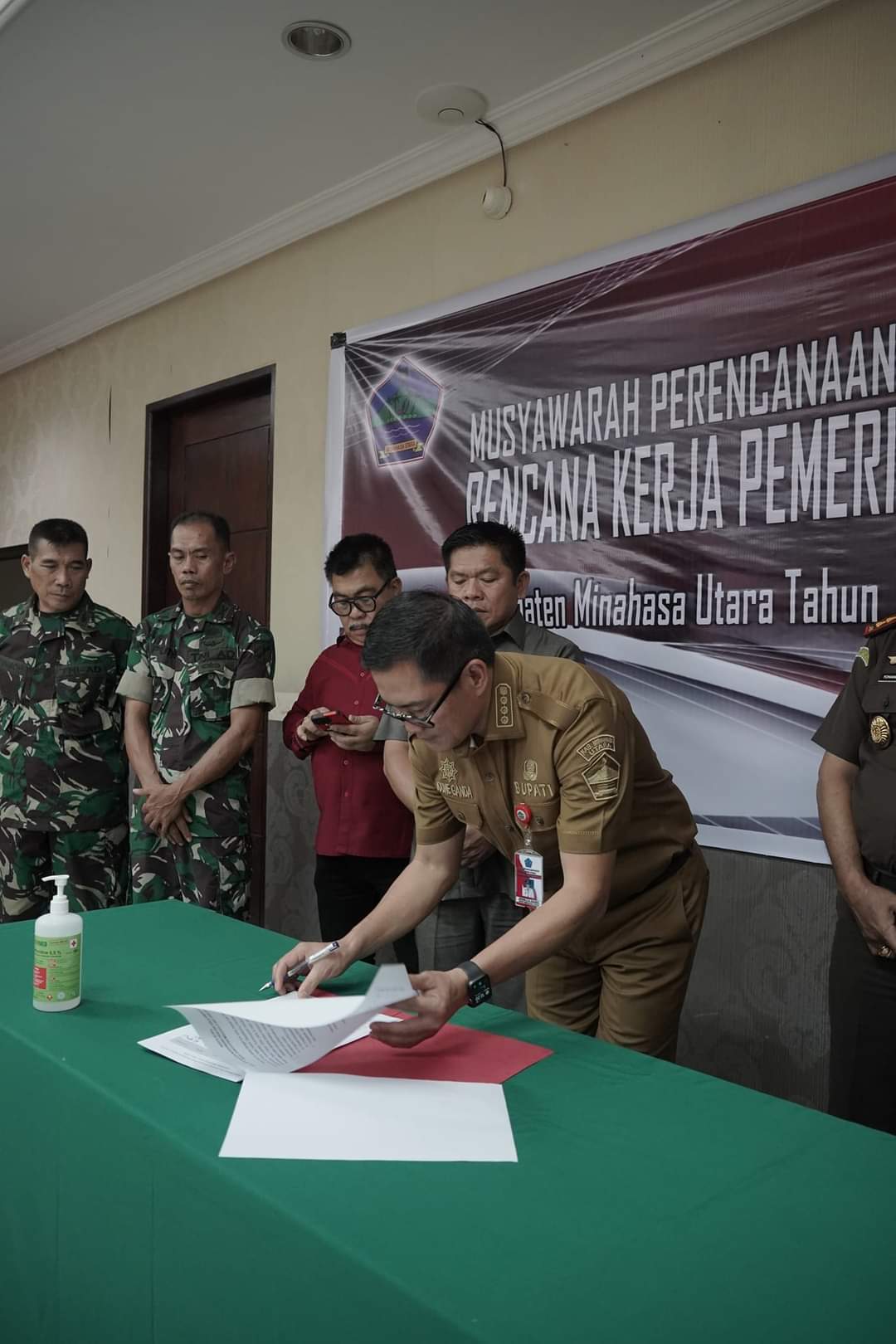 Dalam sambutannya Bupati Minut Joune Ganda menyampaikan bahwa dalam menghadapi tantangan pembangunan yang dinamis, perlu untuk tetap konsisten untuk mewujudkan visi misi Kabupaten Minahasa Utara Tahun 2021-2026 yakni mewujudkan Minahasa Utara Hebat, Perubahan Untuk Kemajuan dan Kesejahteraan berlandaskan Iman dan Gotong Royong.