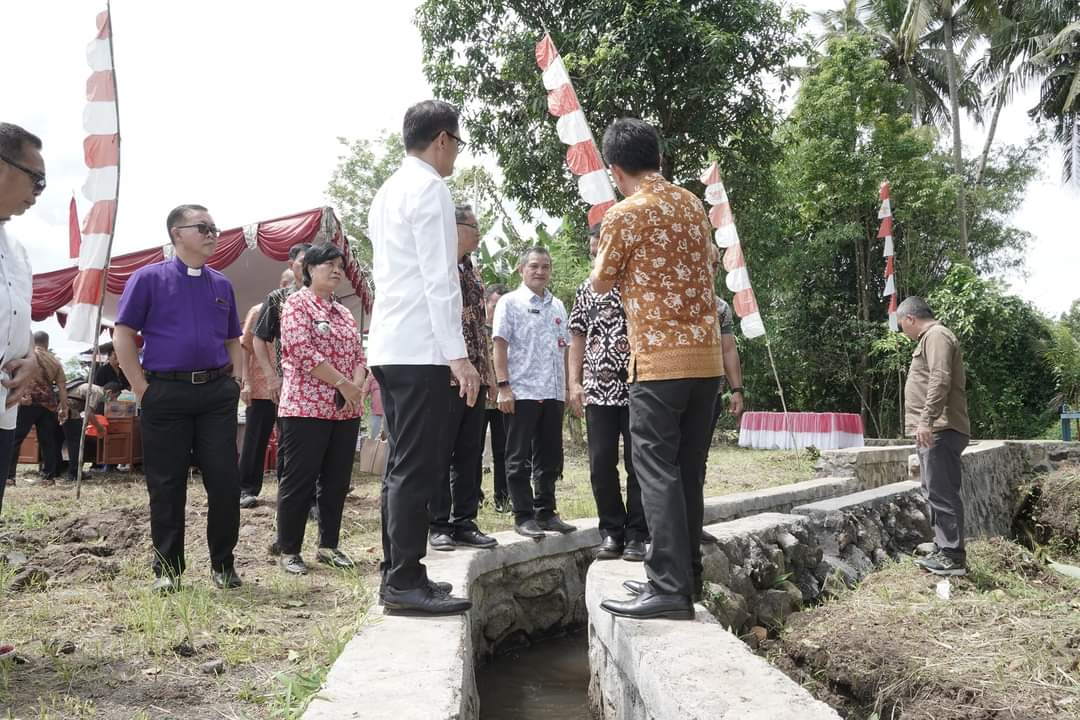 Bupati Minut Joune J.E. Ganda, S.E., MAP., M.M., M.Si., dalam sambutanya berharap saluran irigasi yang sudah dibangun bisa dijaga dan dirawat oleh masyarakat.