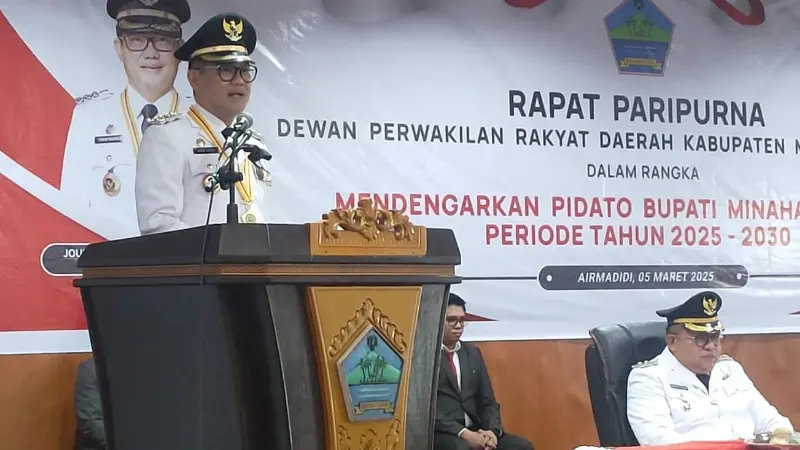 Petasulut.com, MINUT – Pidato perdana, Bupati Kabupaten Minahasa Utara, Joune Ganda, didampingi Wakil Bupati Kevin Lotulung, di hadapan DPRD Minahasa Utara (Minut), Rabu (5/3/2025).