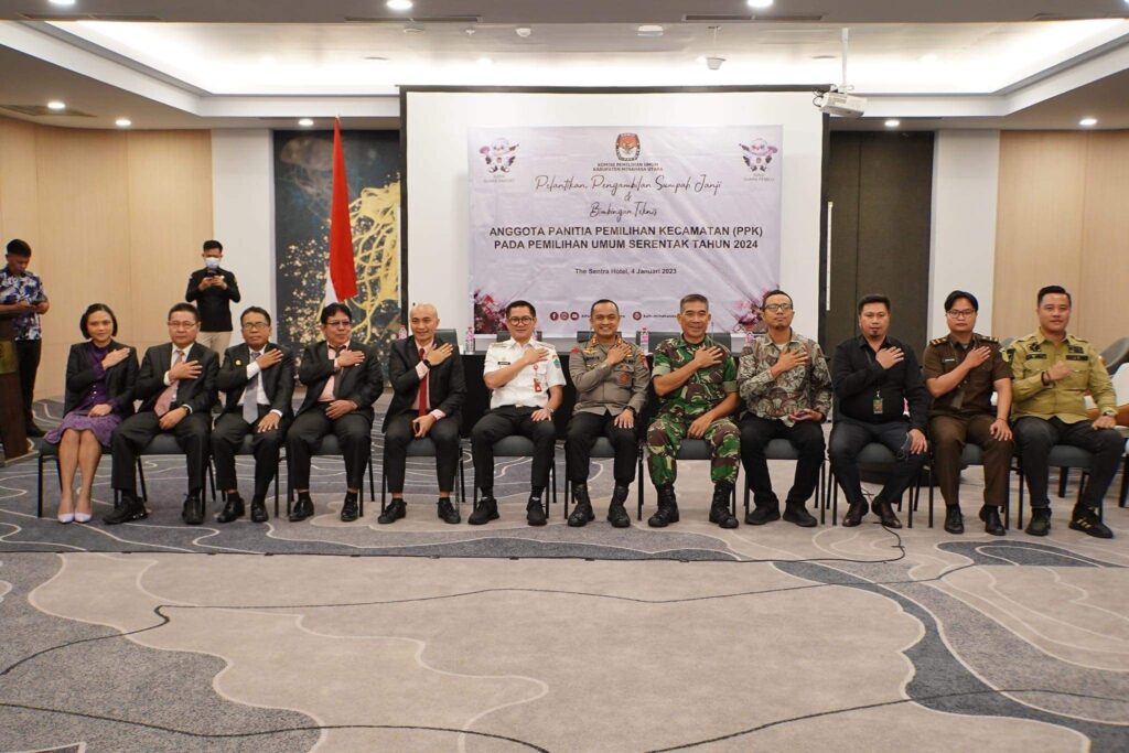 Hadir dalam kegiatan tersebut anggota serta komisioner Komisi Pemilihan Umum (KPU), Ketua Bawaslu Simon Awuy, Forkopimda, jajaran Pemkab, Camat se-Minut.