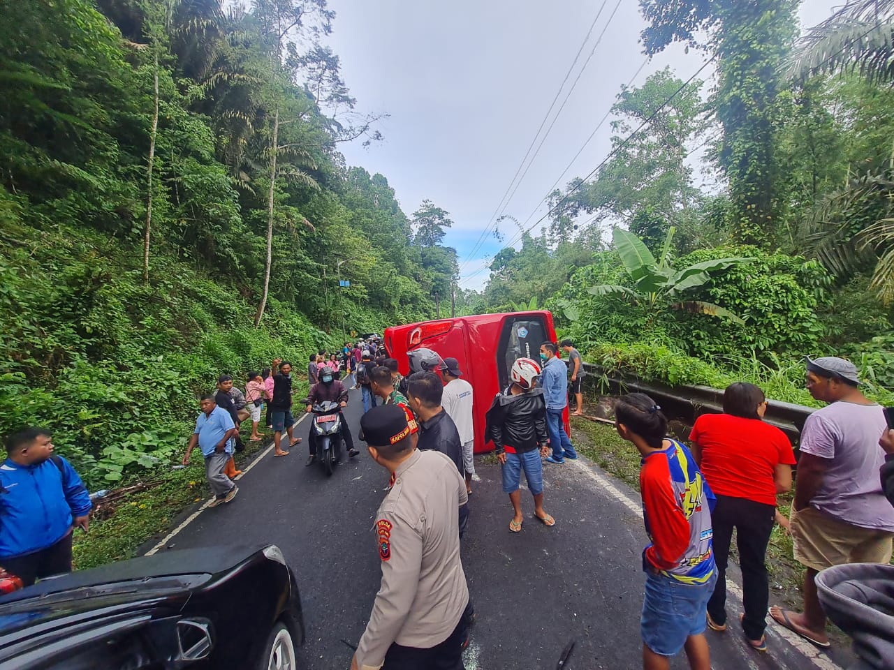 Dimana sebuah mobil bus plat merah yang mengangkut sebanyak 24 orang mengalami kecelakaan di Jalan Karis, antara Desa Leilem dan Desa Sonder, Kabupaten Minahasa.