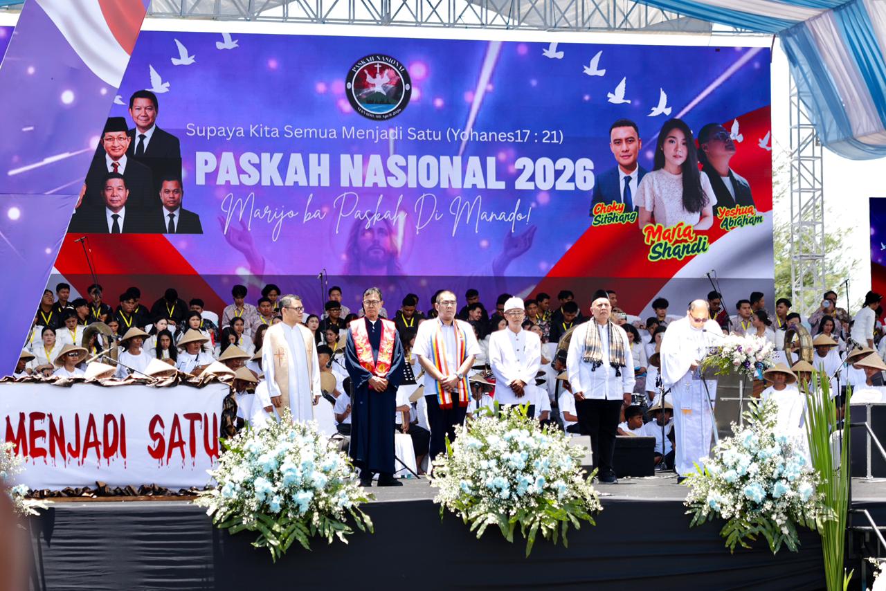 Petasulut.com, SULAWESI UTARA – Suasana penuh khidmat dan persaudaraan mewarnai Perayaan Paskah Nasional Gereja-Gereja di Sulawesi Utara Tahun 2026 yang digelar di Kawasan Pohon Kasih, Rabu (08/04/2026). Ribuan umat Kristiani dari berbagai daerah memadati lokasi tersebut, menjadikan momentum ini sebagai simbol kuat persatuan dan kerukunan antarumat beragama di Bumi Nyiur Melambai.