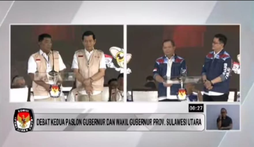 Petasulut.com, MINAHASA – Debat publik kedua, Pasangan Calon Gubernur dan Wakil Gubernur Sulut pilkada Tahun 2024, nomor urut 1 Yulius Selvanus Komaling (YSK) dan Johanis Victor Mailangkay (JVM), nomor urut 2 Elly Engelbert Lasut (E2L) dan Hanny Joost Pajouw (HJP), nomor urut 3 Steven Kandou (SK) dan Denny Tuejeh (DT).