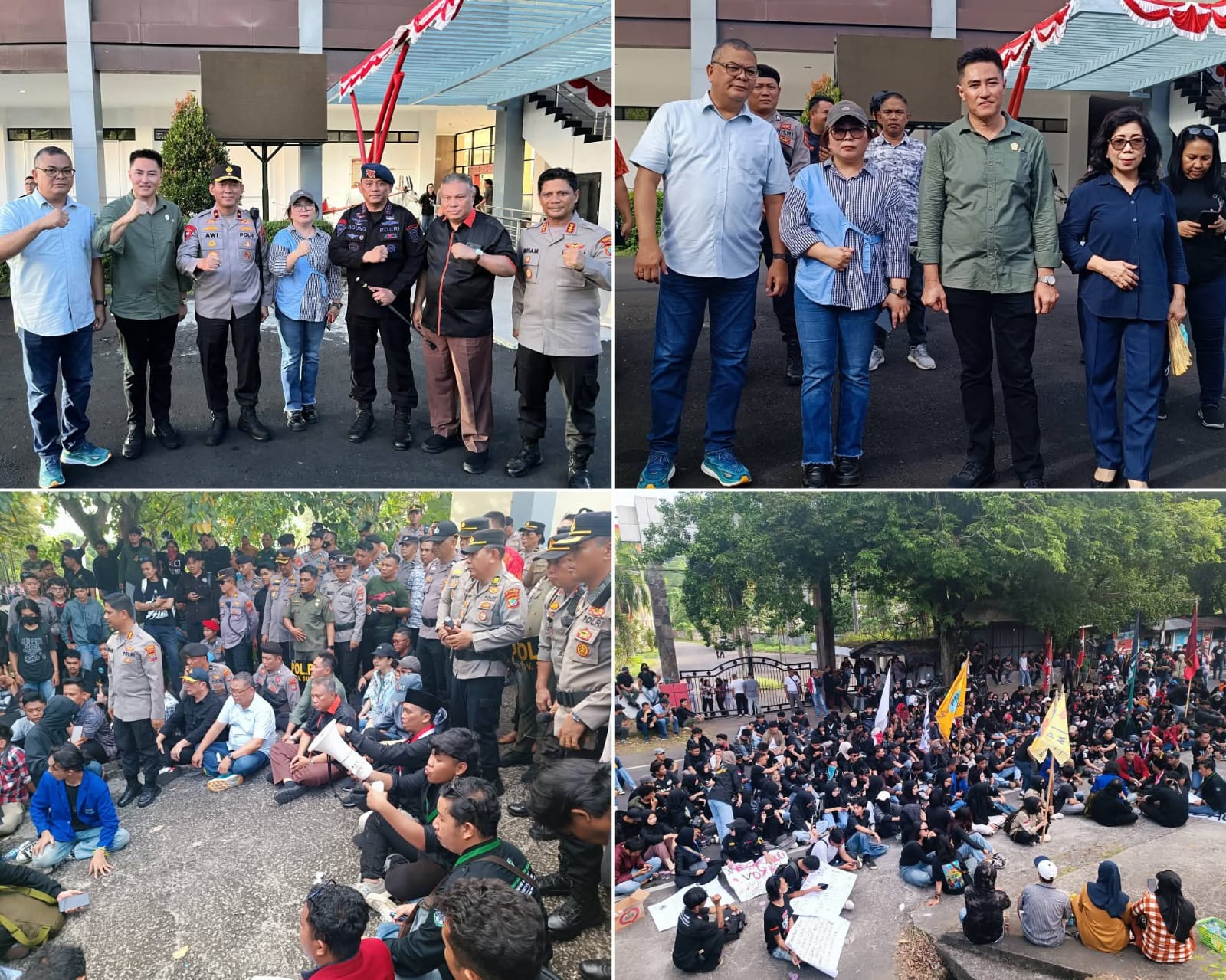 Aksi demo mahasiswa tersebut diterima oleh Pimpinan dan Anggota DPRD Sulut, yakni Wakil Ketua DPRD Royke Anter, Anggota Louis Schramm, Hillary Tuwo, Jeane Laluyan, Amir Liputo, Paula Runtuwene, Royke Roring, juga turut di dampingi Sekwan Niklas Silangen.