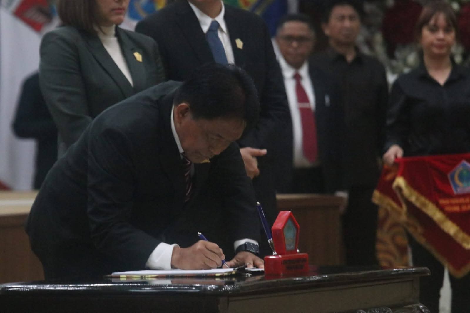 Dalam sambutannya, Gubernur Yulius menyampaikan apresiasi atas kerja keras DPRD Sulut dalam menjalankan fungsi pengawasan dan penyerapan aspirasi masyarakat.