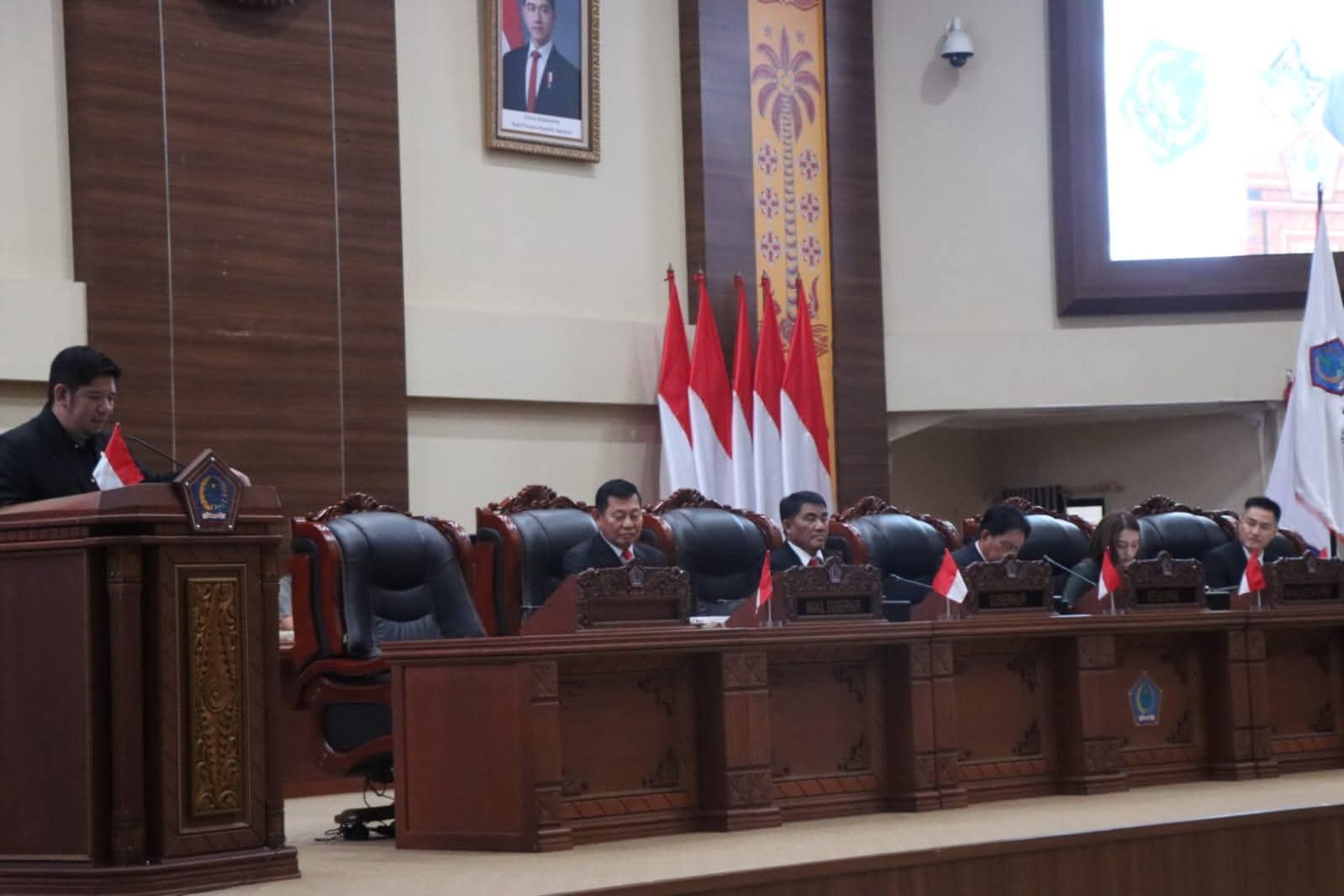 Rapat paripurna yang berlangsung di ruang sidang utama DPRD Sulut itu dipimpin langsung Ketua DPRD Sulut, dr. Fransiskus Andi Silangen, Sp.B-KBD, didampingi Wakil Ketua Royke Anter dan Michaela Elsiana Paruntu.