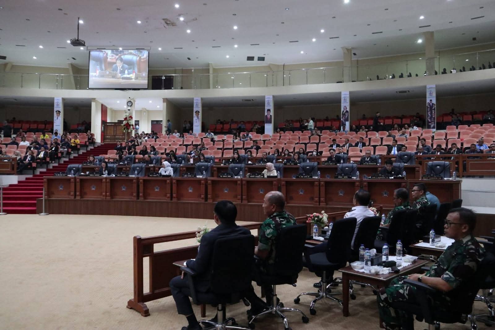 Rapat paripurna tersebut turut dihadiri Pelaksana Harian Sekretaris Provinsi Sulut Dr. Denny Mangala, M.Si, unsur Forkopimda, pimpinan instansi vertikal, serta para kepala Organisasi Perangkat Daerah (OPD) di lingkungan Pemerintah Provinsi Sulawesi Utara.