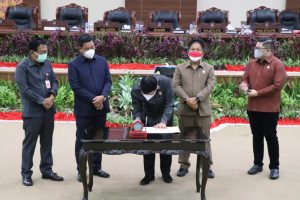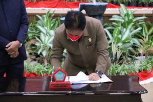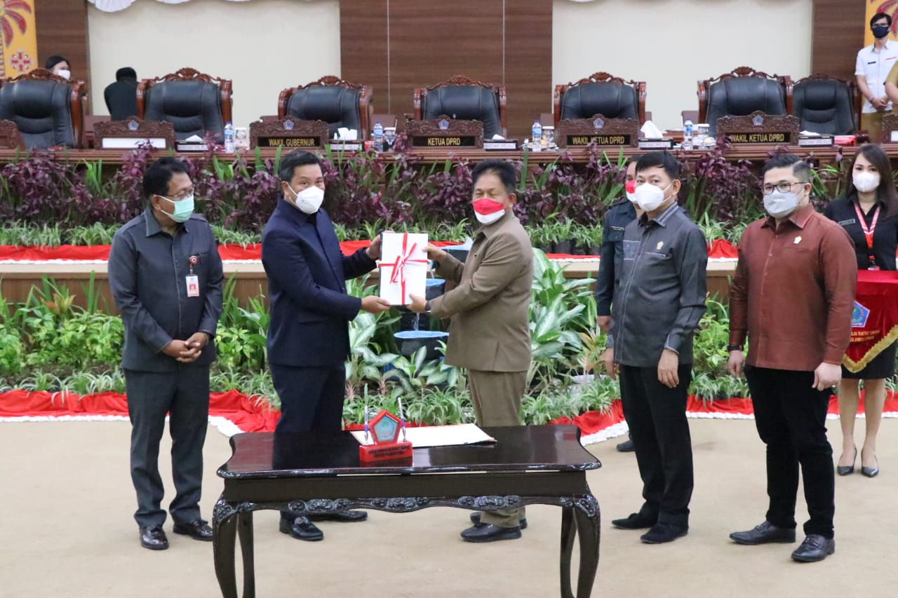 Rapat itupun dilanjutkan dengan penandatanganan persetujuan bersama terhadap Ranperda RPJMD provinsi Sulut tahun 2021-2026 oleh Pimpinan DPRD Sulut dan Wakil Gubernur Sulut yang disaksikan seluruh anggota DPRD Provinsi Sulawesi Utara, Para Assisten pemerintah Provinsi Sulut bersama jajarannya, Tokoh Masyarakat, Undangan dan Insan Pers yang hadir secara fisik maupun virtual.