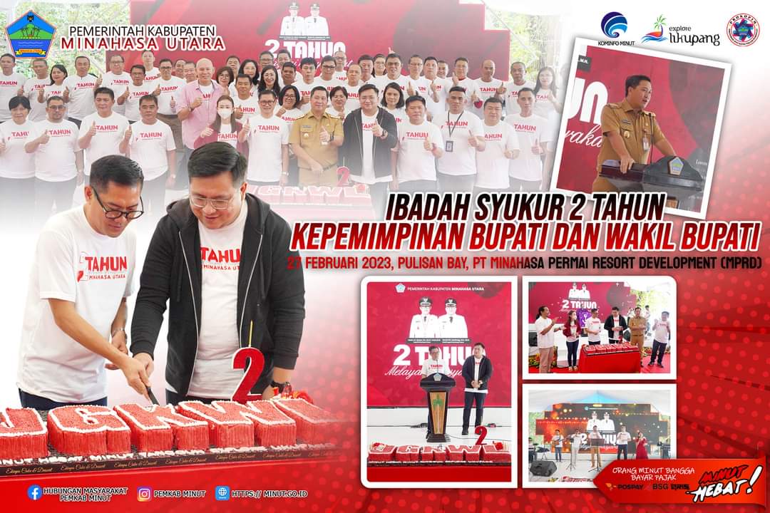 Ibadah syukur 2 Tahun Kepemimpinan JGKWL dipimpin oleh Pdt. Billy Johannis, S.Th dan di hadiri oleh Wakil Gubernur Sulawesi Utara Drs. Steven O. E. Kandouw, Ketua Tim Penggerak PKK sekaligus Ketua Dekranasda Kabupaten Minahasa Utara Rizya Ganda-Davega, Forkopimda Minahasa Utara, Owner MPRD Leo Rustandi, serta Perangkat Daerah Se-Kabupaten Minahasa Utara.