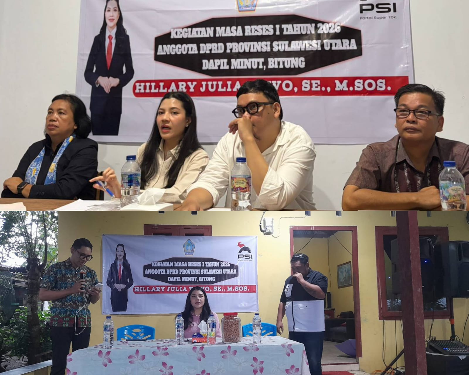 Petasulut.com, SULAWESI UTARA – Kegiatan reses anggota DPRD Provinsi Sulawesi Utara dari Partai PSI, Hillary Julia Tuwo, menjadi momentum penting bagi masyarakat untuk menyampaikan berbagai aspirasi secara langsung, Minggu (29/03/2026).