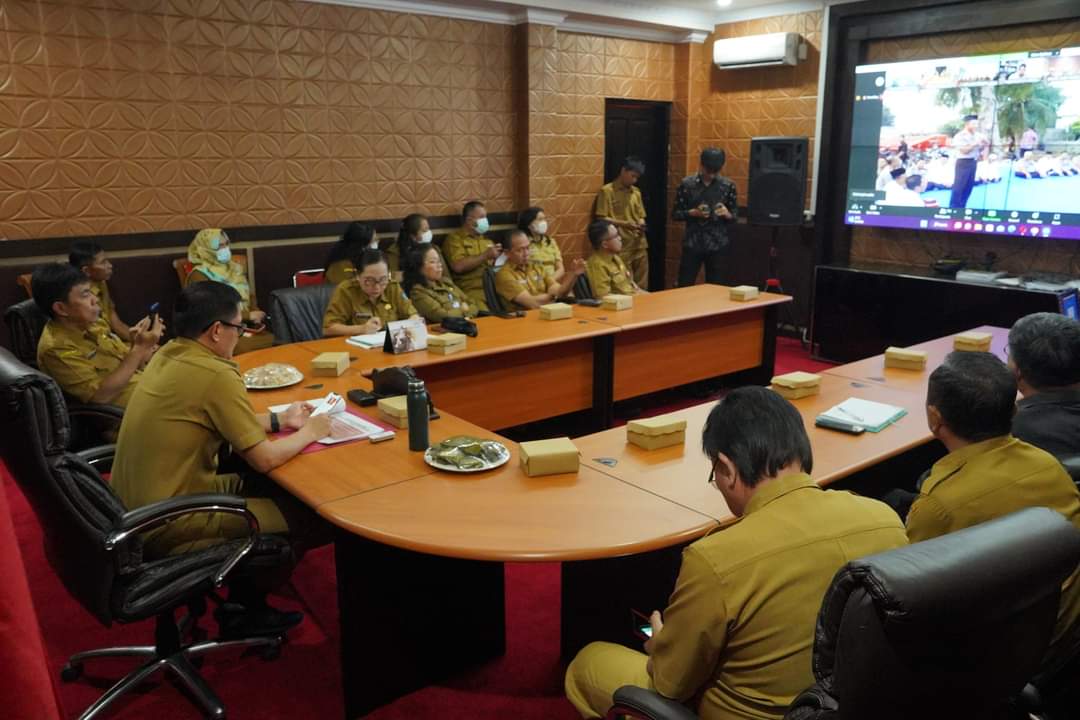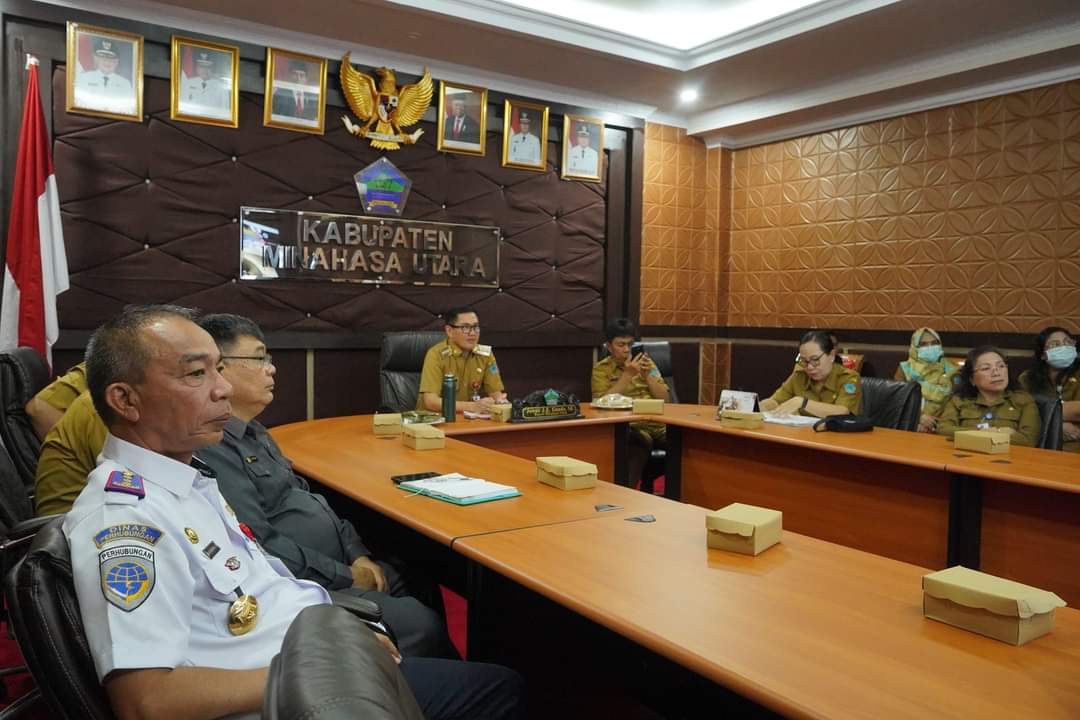 Petasulut.com, MINUT – Bupati Minahasa Utara Joune J.E. Ganda, S.E., MAP., M.M., M.Si., didampingi Sekretaris Daerah Ir. Novly G. Wowiling, M.Si dan bersama Tim Pengendali Inflasi Daerah (TPID) mengikuti Rapat Koordinasi bersama Mendagri Jenderal Polisi Prof. Drs. H. Muhammad Tito Karnavian, M.A., Ph.D., secara virtual, Senin, (27/03/2023).