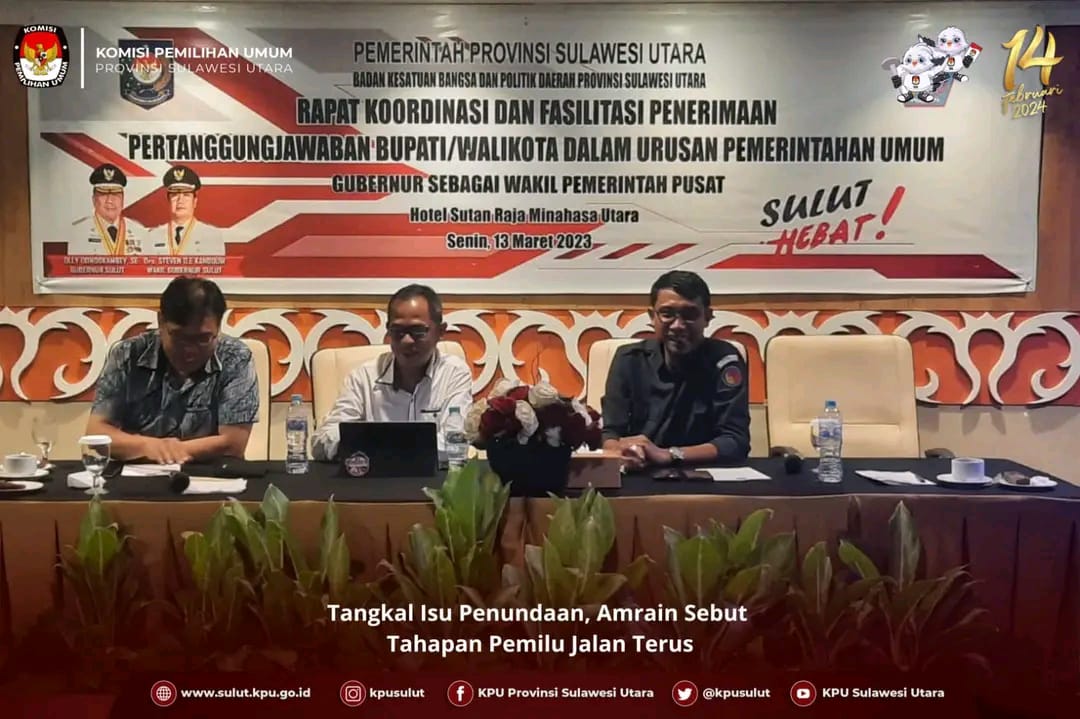 Seperti ditegaskan Komisioner KPU Sulut Amrain Razak, Senin (13/3/2023) dihadapan Kepala Badan Kesbangpol se Sulawesi Utara di Hotel Sutan Raja, Kabupaten Minahasa Utara.
