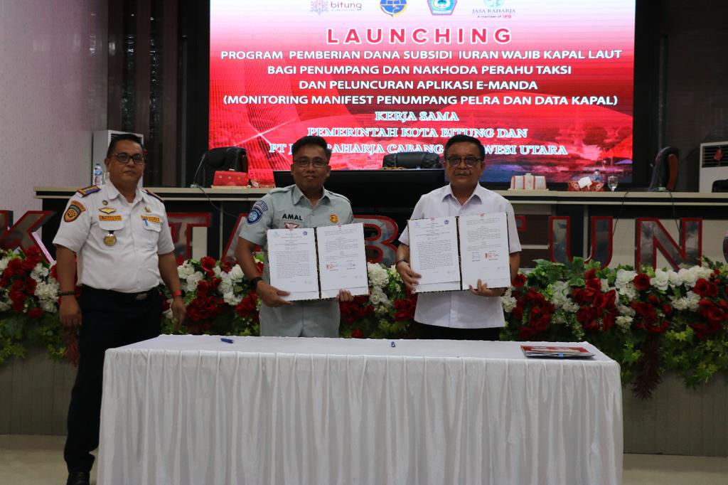 Petasulut.com, MANADO – Kamis 9 Juni 2023 Bertempat di Aula Kantor Walikota Bitung, PT Jasa Raharja berkolaborasi dengan Pemerintah Kota Bitung dan Dinas Perhubungan melaunching program Dana Subsidi IWKL dari Pemerintah Kota Bitung kepada Penumpang Kapal Pelra di Pulau Lembeh.