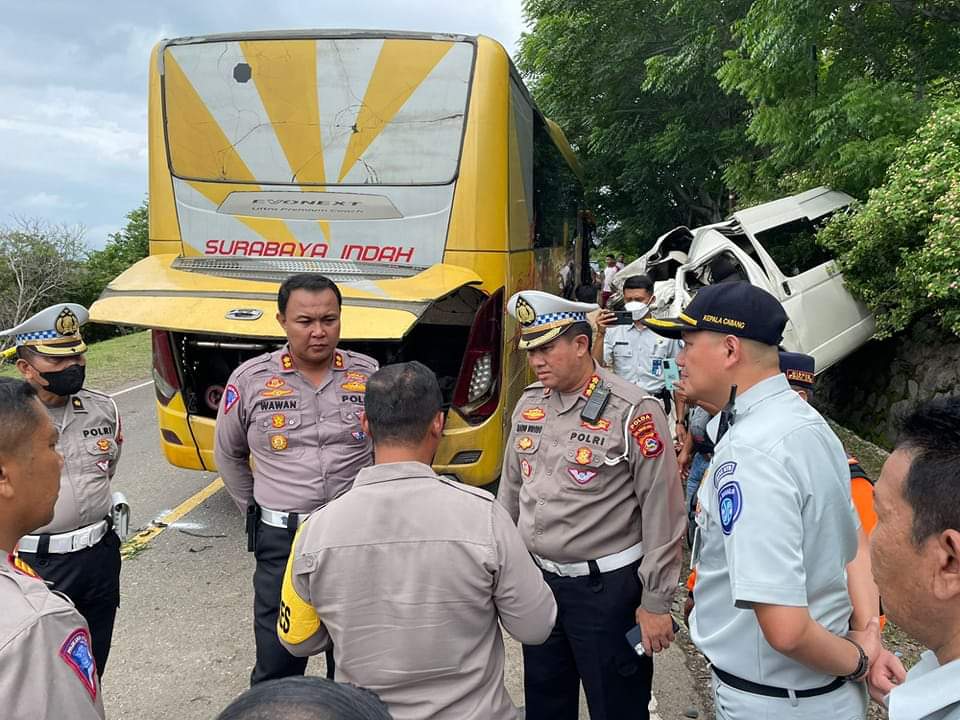 Petasulut.com, SUMBAWA BARAT – Jasa Raharja menjamin seluruh korban kecelakaan lalu lintas yang melibatkan bus Surabaya Indah dengan minibus travel Pancasari, yang terjadi di Jalan Raya Lintas Pototano – Sumbawa, tepatnya di Dusun Batu Guring, Desa Kokarlian, Kecamatan Pototano, Kabupaten Sumbawa Barat, Jumat (24/02/2023) pukul 21.30 WITA.