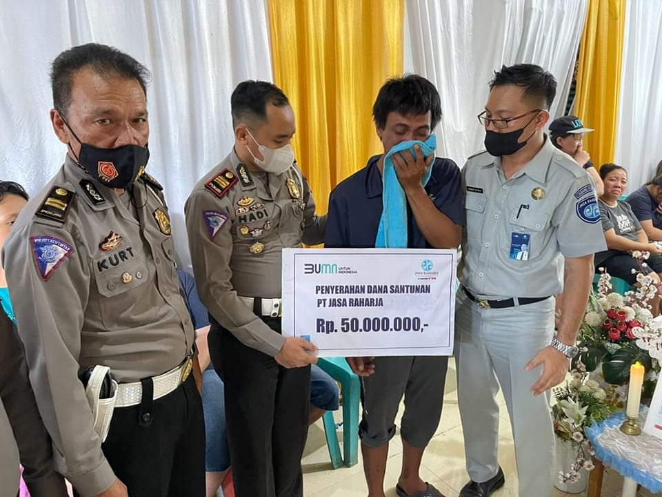 “Ini sebagai wujud negara hadir memberikan perlindungan dasar bagi korban kecelakaan lalu lintas jalan, dan santunan korban meninggal dunia diserahkan langsung pada hari Rabu 20 Juli 2022 dengan mekanisme transfer ke rekening ahli waris korban, “jelasnya.