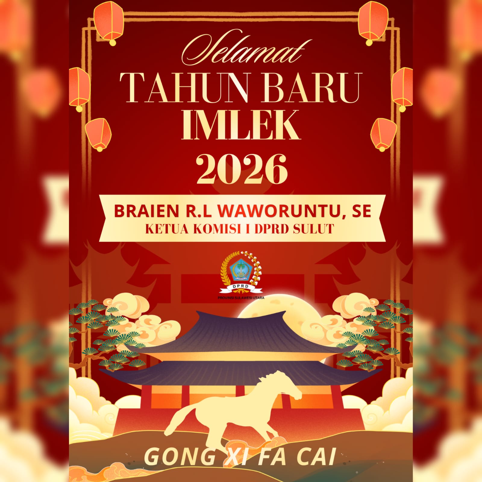 Petasulut.com, SULAWESI UTARA – Ketua Komisi I DPRD Sulawesi Utara, Braien R. L. Waworuntu, SE menyampaikan ucapan Selamat Tahun Baru Imlek 2026 kepada seluruh masyarakat yang merayakan. Momentum Tahun Baru Imlek dinilainya sebagai saat yang tepat untuk memperkuat persaudaraan, menjaga persatuan, serta merawat toleransi di Bumi Nyiur Melambai.