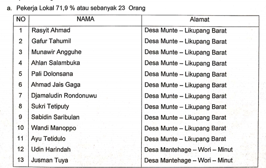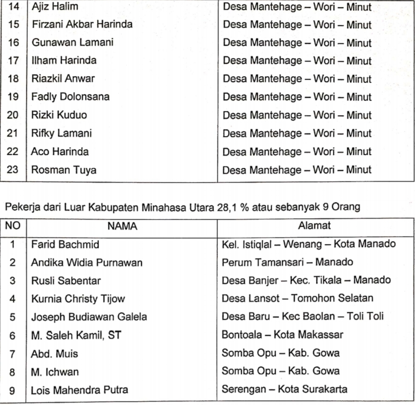 Terkait tenaga kerja yang saat ini bekerja di lapangan sebanyak 32 Orang, komposisinya sebagai berikut:
