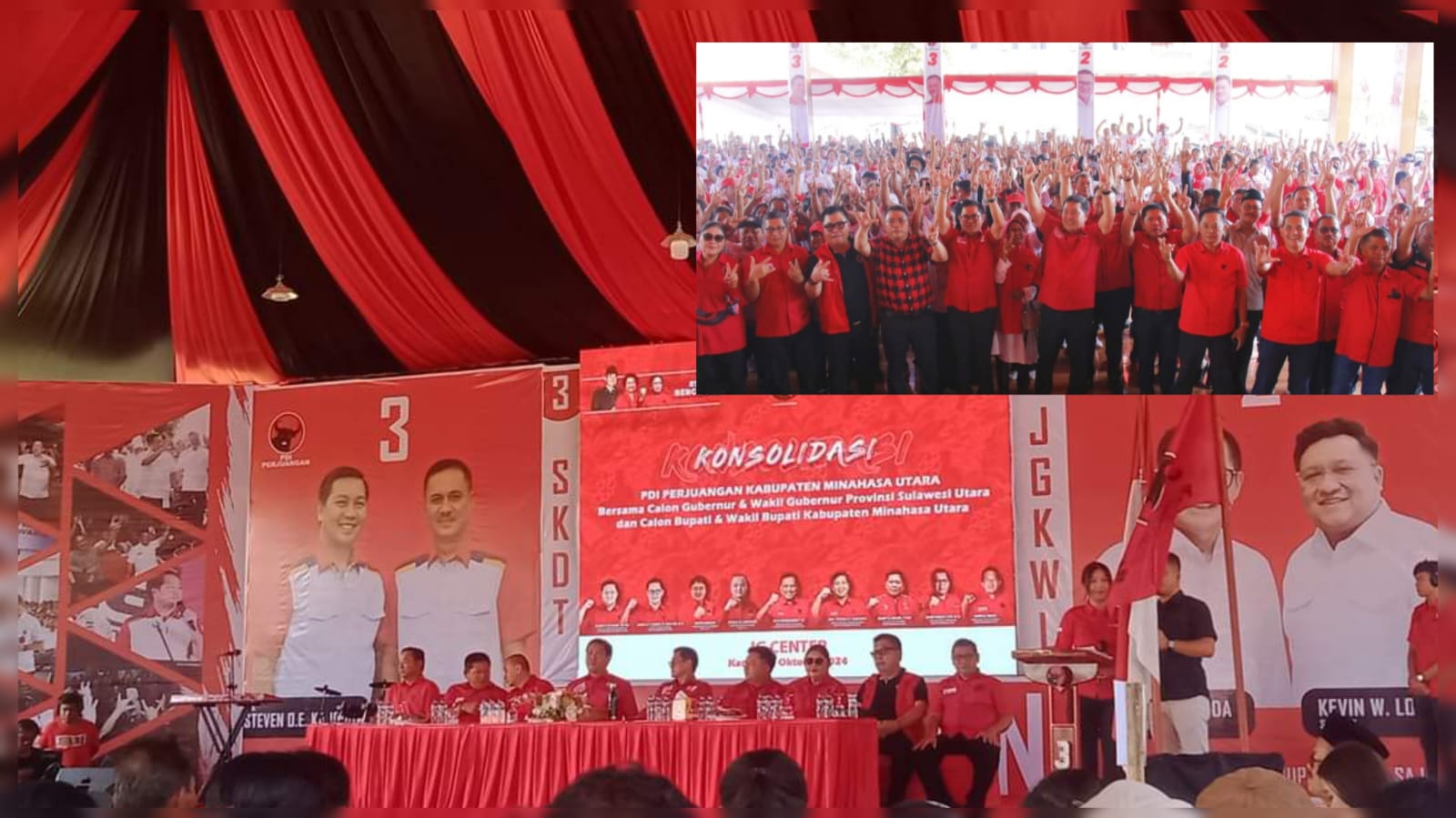 Konsolidasi partai berlambang banteng itu terlihat berapi-api, dimana terlihat Ribuan kader PDIP Minahasa (Minut) hadir dengan semangat juang untuk menenangkan Steven Kandouw – Denny Tuejeh di Pilkada Sulut dan Joune Ganda – Kevin Lotulung di Pilkada Minut.
