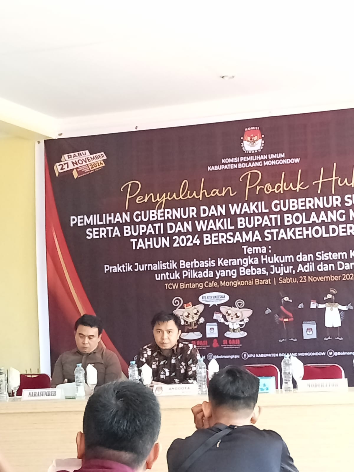 Petasulut.com, BOLMONG – Komisi Pemilihan Umum (KPU) Bolaang Mongondow (Bolmong), menggelar penyuluhan produk hukum Pemilihan Gubernur dan Wakil Gubernur Sulawesi Utara serta Bupati dan Wakil Bupati Bolmong tahun 2024 bersama Stakeholder Pers.