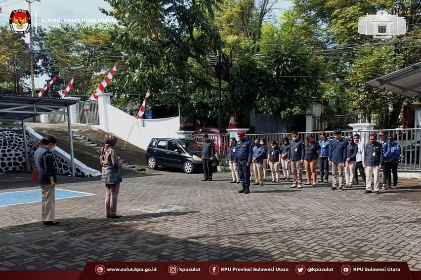 Upacara diikuti oleh Komisioner, Pejabat dan Jajaran Sekretariat dan bertindak sebagai Inspektur Upacara Ibu Lanny A.Ointu (Anggota KPU Provinsi Sulawesi Utara).