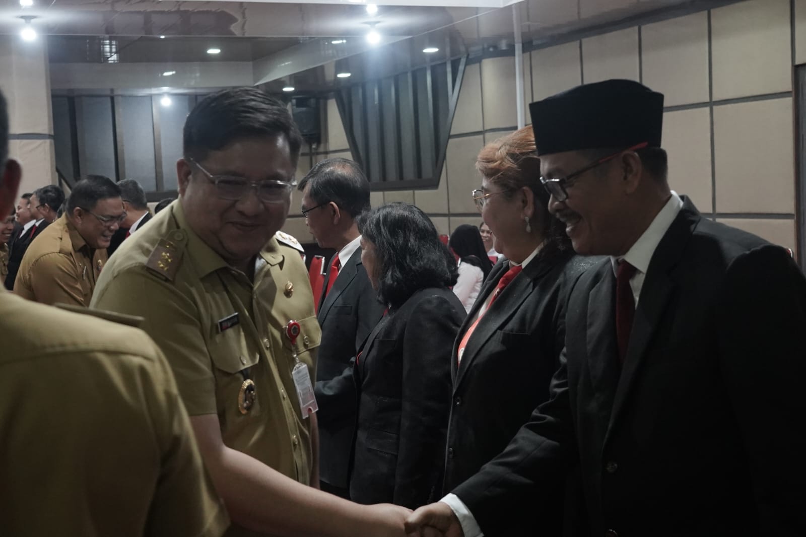 Dalam acara tersebut, mendampingi Bupati Kaban Kesbangpol Sammy Rompis, Asisten I Pemerintahan Umbase Mayuntu, Asisten II Ekonomi Pembangunan Drs Alan Mingkid, Staf Ahli Styvi Watupongoh SIP dan Jofieta Supit. Ikut hadir dalam acara tersebut Kakanmenag Minut Chintya Sepang M.Th.