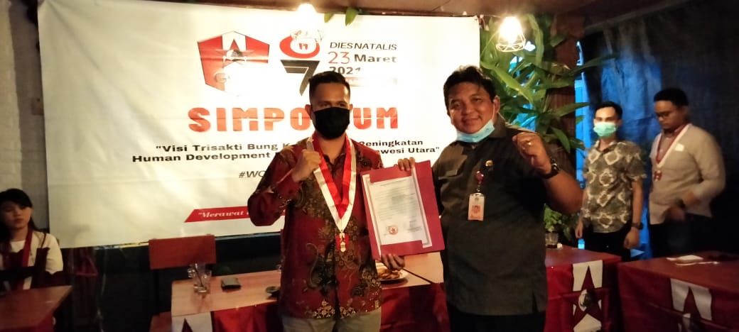 Pada kesempatan itu pun, Stevan Liow memberikan Surat keterangan terdaftar (SKT) DPD GMNI Sulut di kesbangpol Provinsi Sulut atas kepemimpinan Ketua Vrenky M Muluwere dan Meyorits Mandiangan beserta jajaran.