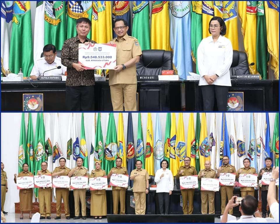 Penyerahan insentif tersebut diserahkan langsung oleh Menteri Dalam Negeri Prof. Drs. H. Tito Karnavian,MA kepada Bupati Minahasa Utara Joune J.E Ganda,S.E.,M.A.P., M.M.,M.Si. dan Wakil Bupati Minahasa Utara Kevin W.Lotung.S.H.,M.H. yang diwakili oleh Sekretaris Daerah Ir. Novly G. Wowiling,M.Si disaksikan oleh Menteri Keuangan Sri Mulyani pada hari Senin, (6/11-2023) bertempat di Kementerian Dalam Negeri Jakarta.