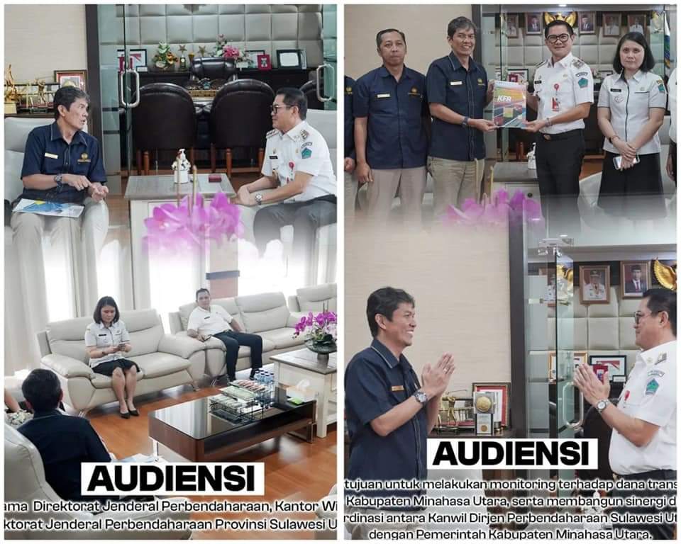 Petasulut.com, MINUT – Bupati Minahasa Utara Joune Ganda menerima kunjungan audiensi dari Kementerian Keuangan Republik Indonesia, Direktorat Jenderal Perbendaharaan, Kantor Wilayah Direktorat Jenderal Perbendaharaan Provinsi Sulawesi Utara.