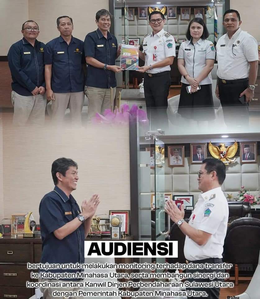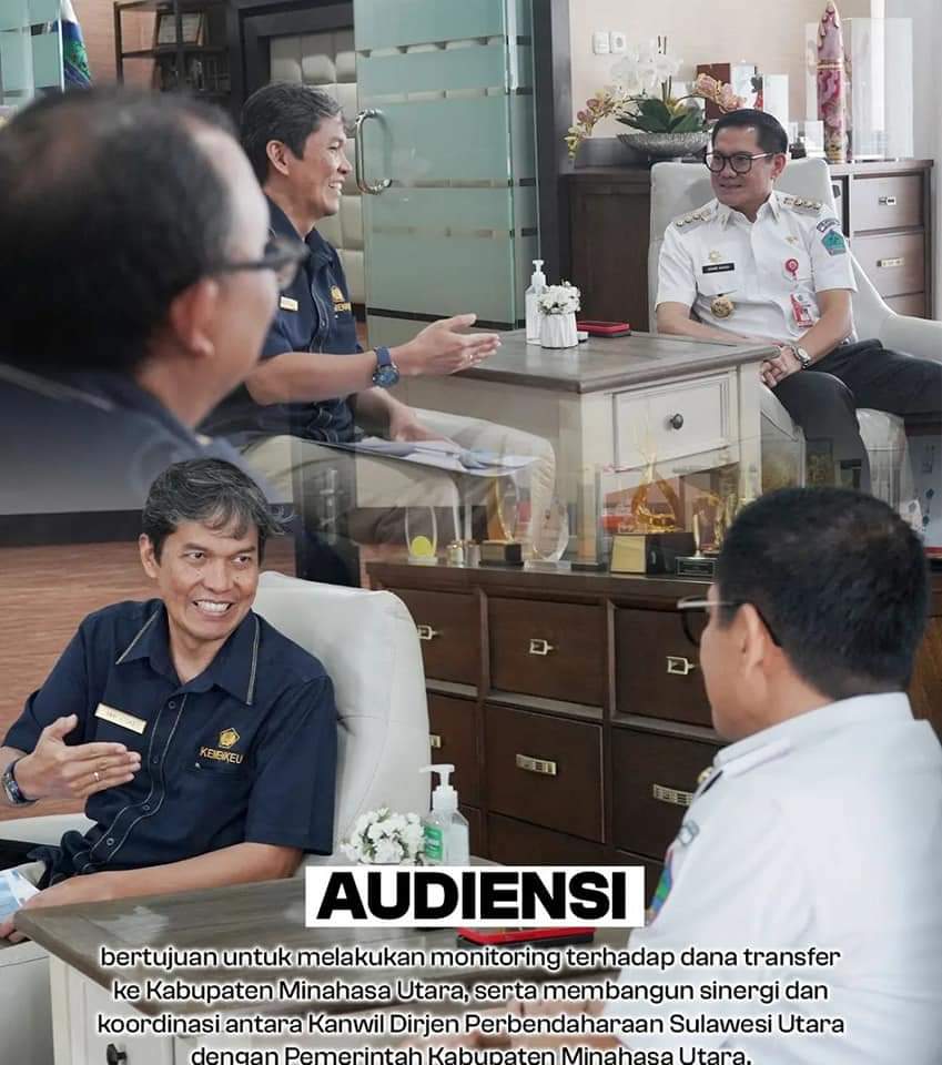 Pada kesempatan itu, Bupati Joune Ganda mengatakan bahwa Tujuan audiensi ini adalah Melakukan monitoring terhadap dana transfer ke Kabupaten Minahasa Utara.