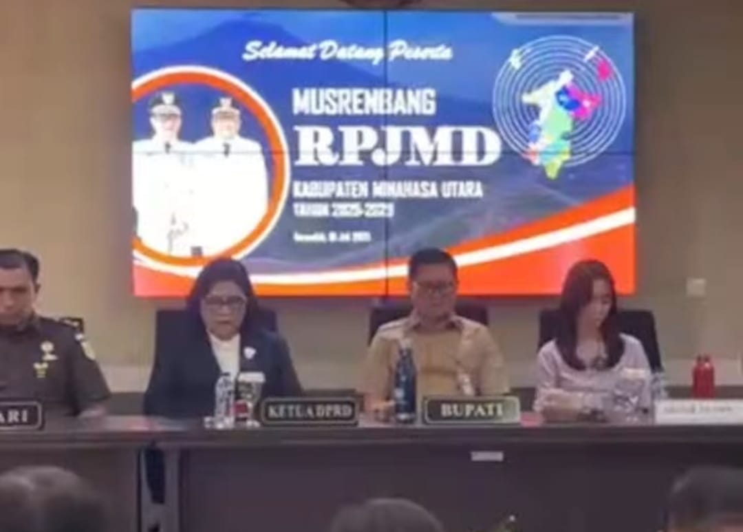 Petasulut.com, MINAHASA UTARA – Dalam pergelaran Musrembang Rencana Pembangunan Jangka Menengah Daerah (RPJMD) Kabupaten Minahasa Utara (Minut) Tahun 2025-2029, Selasa (01/07/2025), Bupati Joune Ganda menyampaikan secara detail perihal rencana pembangunan di berbagai sektor.