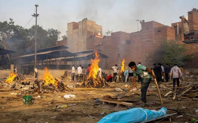 Kengerian akibat Covid-19 di India semakin kentara saat televisi dan foto-foto yang tersebar di media sosial menunjukkan kremasi massal di seluruh negeri.