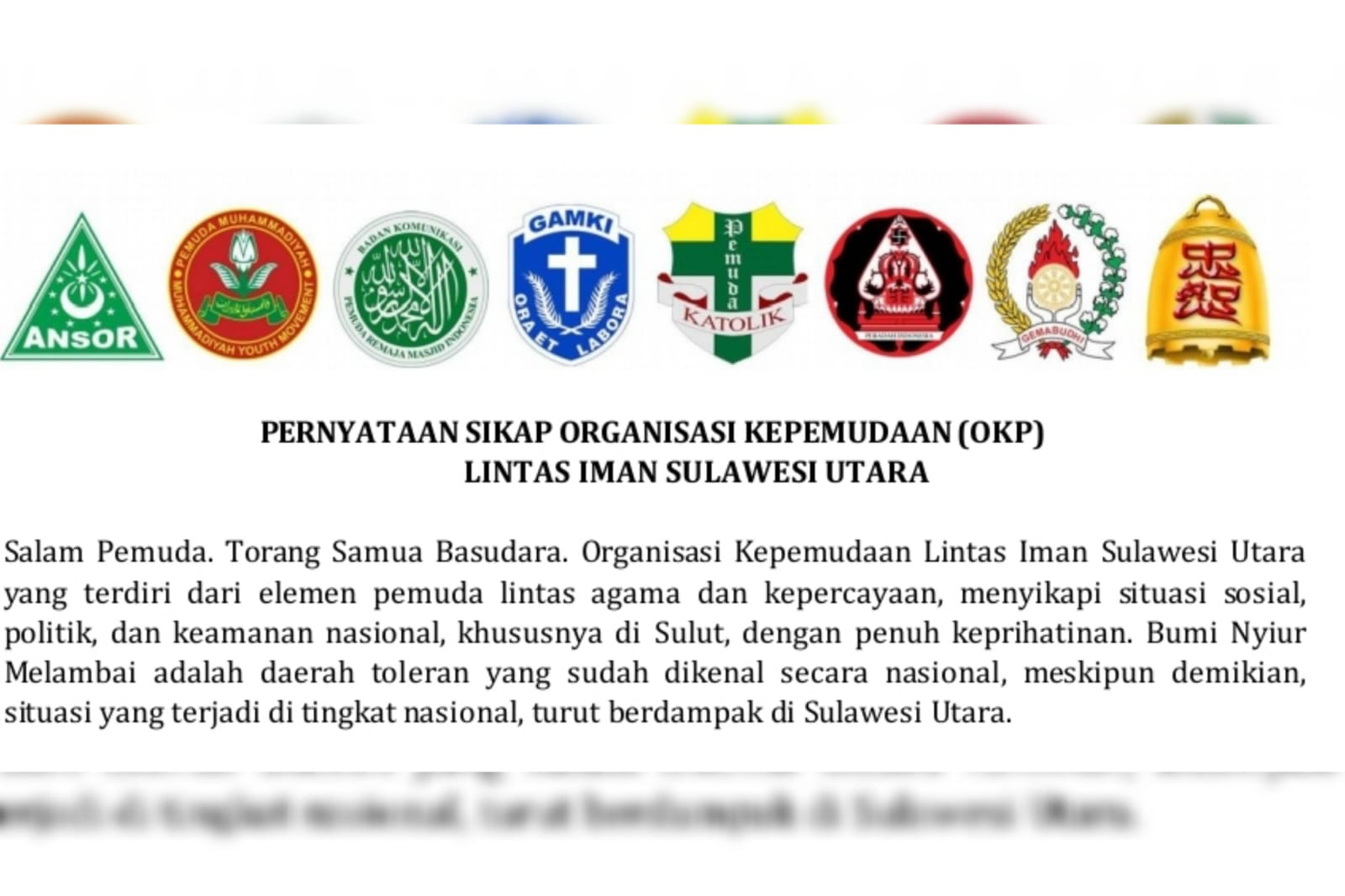 Dengan sikap bersama ini, OKP Lintas Iman Sulawesi Utara berharap masyarakat tetap menjaga Sulut sebagai tanah yang damai, harmonis, dan sejahtera tanpa memandang latar belakang agama maupun keyakinan.