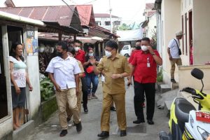 AA didampingi staf khusus Fanny Mantali, juga didampingi Kepala Dinas Perkim Kota Manado Peter Eman serta disambut Lurah dan ketua-ketua lingkungan.