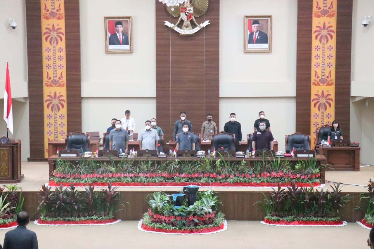 Rapat dipimpin langsung oleh Ketua DPRD Sulut Fransiscus Andi Silangen didampingi Wakil Ketua DPRD Sulut, Billy Lombok serta dihadiri oleh Gubernur dan Wagub Sulut, Olly Dondokambey-Steven Kandouw.