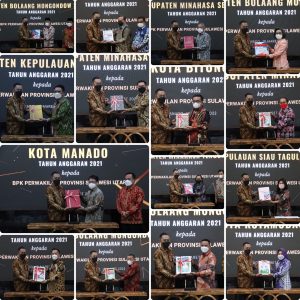Petasulut.com, SULUT – BPK Perwakilan Provinsi Sulawesi Utara menggelar Penyerahan Serentak LKPD Tahun Anggaran 2021 Unaudited dari 16 Pemerintah Daerah di wilayah Provinsi Sulawesi Utara meliputi Pemerintah Provinsi Sulawesi Utara dan 11 Pemerintah Kabupaten dan 4 Pemerintah Kota, jumat (18/04) bertempat di Aula BPK Perwakilan Provinsi Sulawesi Utara.