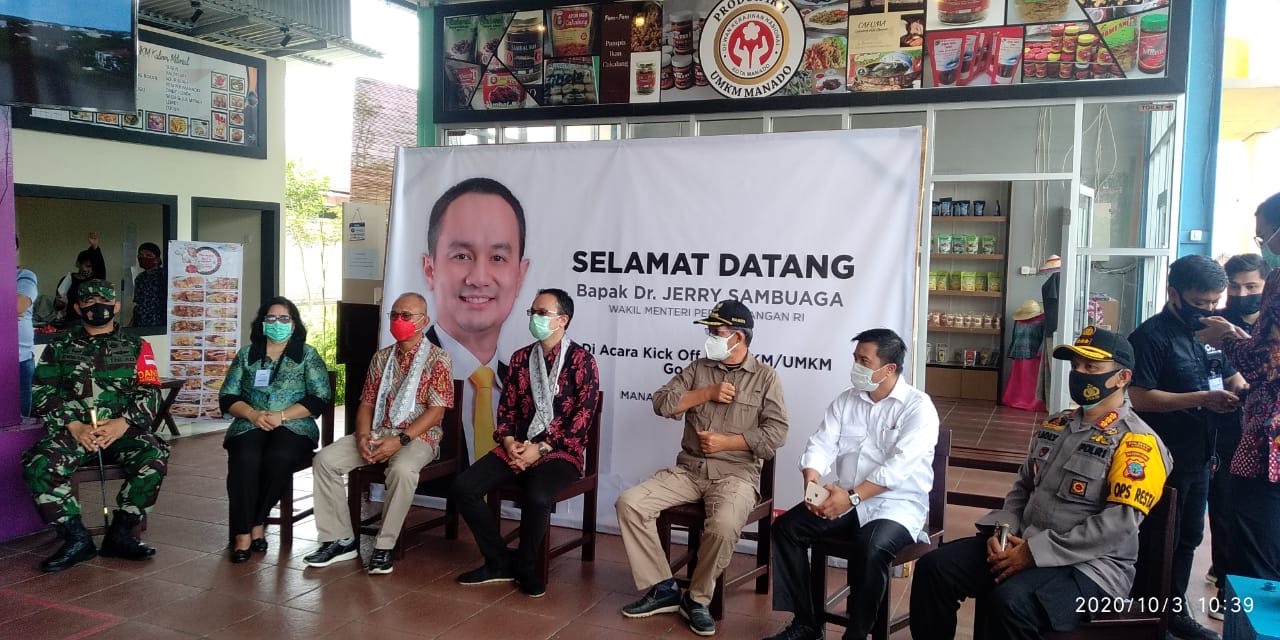 Petasulut.com, SULUT – Dalam rangka menaikkan sektor ekonomi khususnya disegi produk-produk unggulan di Sulawesi Utara terutama kota manado, Pemerintah Kota (Pemkot) Manado bekerja sama dengan Kamar Dagang Indonesia (Kadin) melauncing kegiatan Kick off duta IKM/UMKM go Export di Godbless Park, Manado, yang dihadiri langsung oleh Wakil Menteri Perdagangan (Wamendag), DR. Jerry Sambuaga, Sabtu (03/10/2020).
