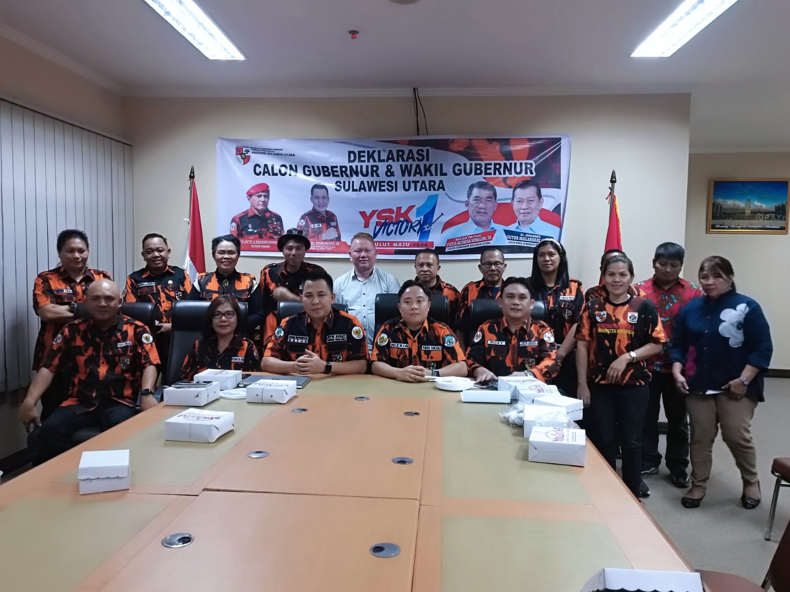 “Pada hari ini saya bersama pengurus PP Sulut mendeklarasikan untuk mendukung paslon YSK – Victory. Torang pe calon ini adalah pilihan Prabowo Subianto,” Ucap Braien yang juga Bendahara Tim Kampanye YSK.