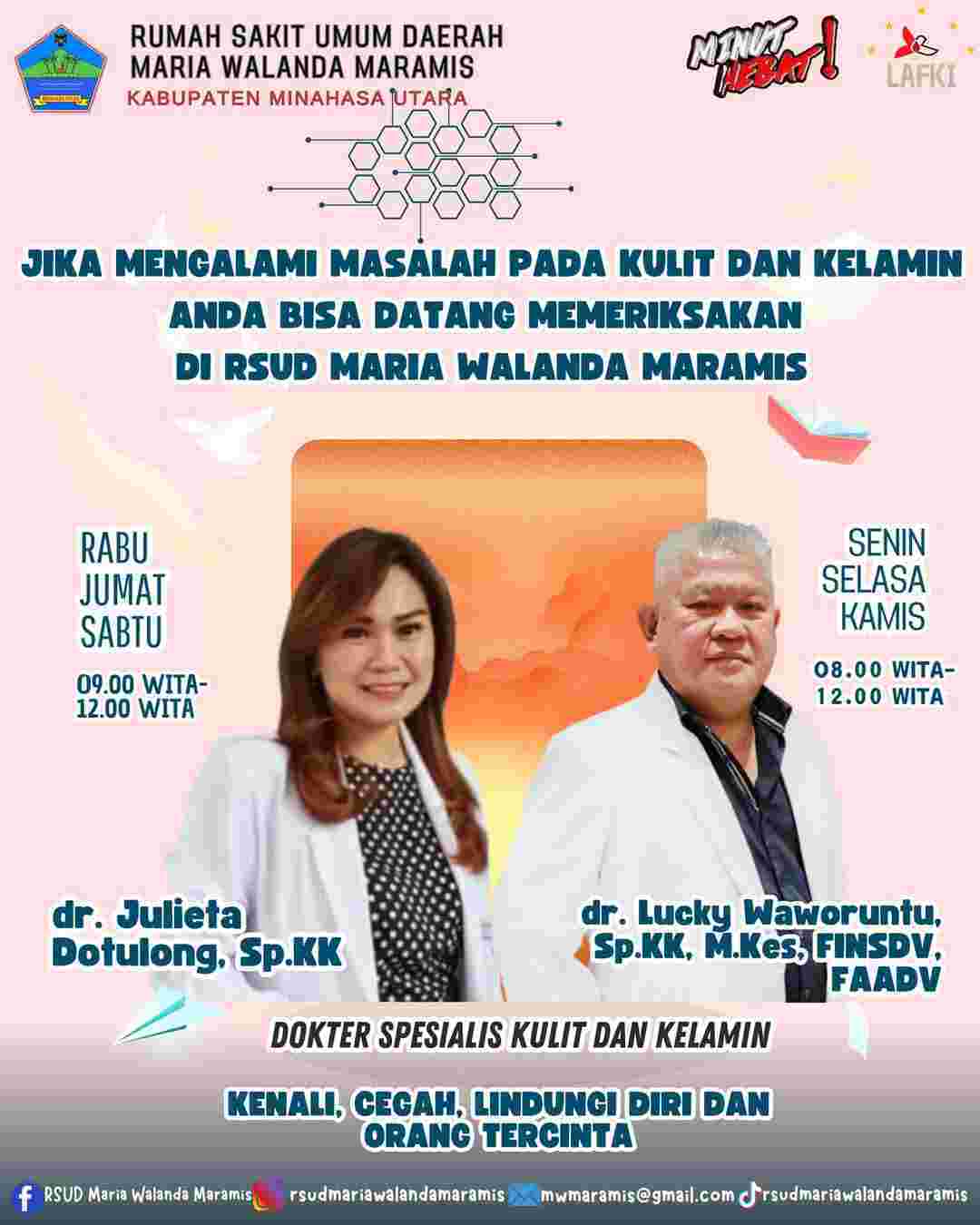 Pun, RSUD Maria Walanda Maramis telah menjadwalkan konsultasi dengan dua dokter spesialis kulit dan kelamin yang berpengalaman: