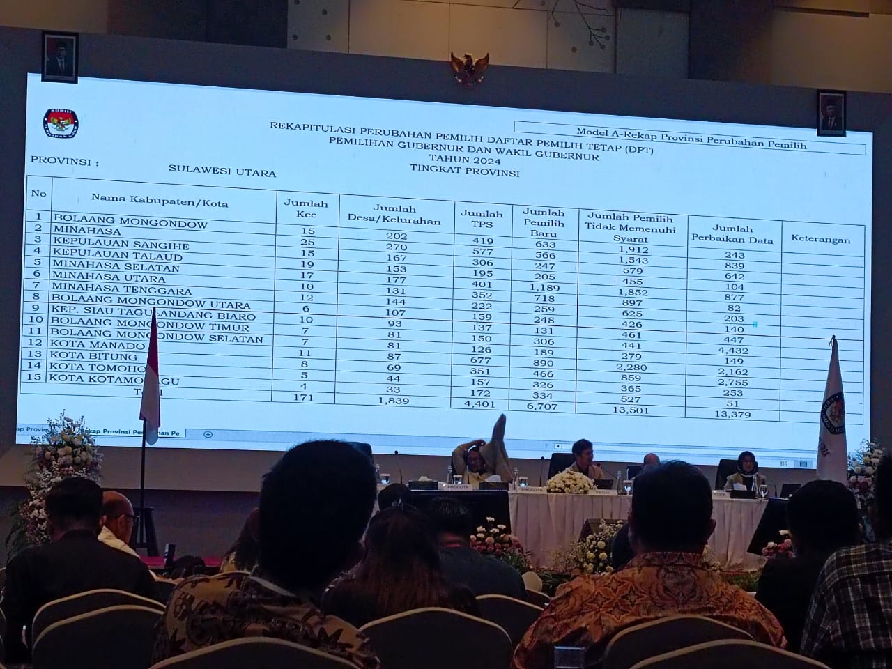 Pada kesempatan itu, KPU di 15 Kabupaten dan Kota satu persatu memaparkan berita acara rekapitulasi DPT disertai dengan perbaikan dan perubahan.