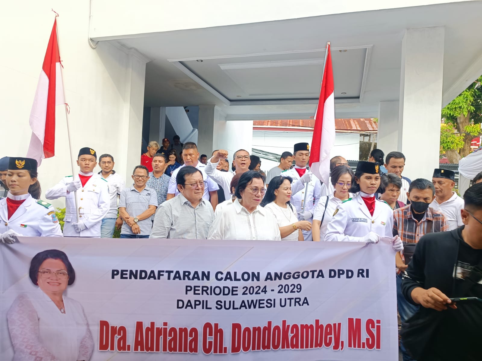 Petasulut.com, SULUT – Di antar langsung oleh ratusan relawan dan simpatisan serta para Paskibraka, Adriana Dondokambey sambangi Kantor KPU Sulut guna untuk melakukan pendaftaran sebagai bakal calon anggota DPD RI Dapil Sulawesi Utara, Jumat (12/05/2023) Sore.